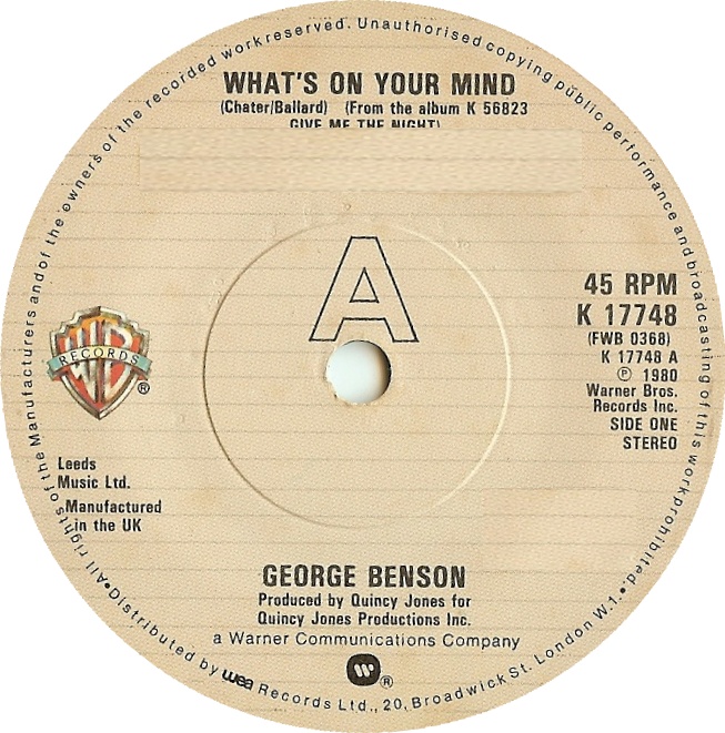 “What’s On Your Mind” was a single by American R&B singer George Benson, which entered the UK Singles Chart on 7 February 1981. It reached a peak position of number 45, and remained in the chart for 5 weeks.