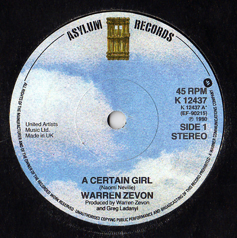 “A Certain Girl” (a cover of a song previously recorded by Ernie K-Doe and The Yardbirds) reached No. 57 on the Billboard Hot 100 and was Warren Zevon‘s second and final hit on that chart.
