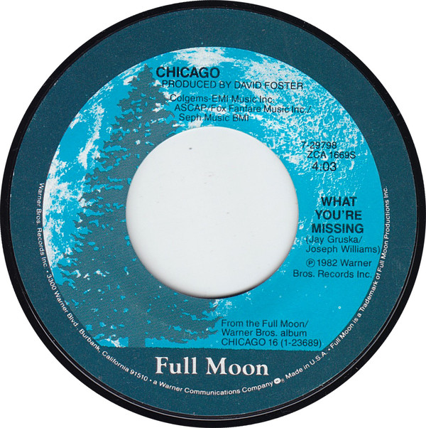 “What You’re Missing” is a song by Chicago from their 16 album. The song was written by Joseph Williams and Jay Gruska and reached #81 in US Billboard charts.